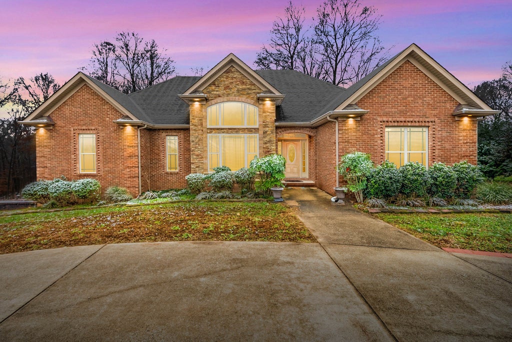 This magnificent split bedroom ranch home is situated on a walk-out basement, offering ample living space and numerous upgrades throughout. The entry foyer opens to the expansive living room with propane fireplace and vaulted ceilings and to the formal dining room with an elegant chandelier. The kitchen has beautiful cabinetry to include drawer stack, double pantry cabinets, bar area, wastebasket cabinet, granite counter tops, custom range hood, and the stove and refrigerator were replaced in 2022. The laundry room (washer 2022) is just off the kitchen in the hall leading to the spacious primary suite with crown molding, double vanity with granite top, tile shower, whirlpool tub, and closet by design closet organizer. The opposite side of the home has three additional spacious bedrooms and a full bath. The main level boasts hardwood floors in the living areas and bedrooms, tile in wet areas and kitchen eat in area. The only carpet is on the stairs to the basement. The fully finished basement boasts a bedroom/office, recreation room, media room, and full bathroom. The oversized garage has plenty of space for two vehicles as well as lawn equipment. There is an abundance of parking outside the garage or in front of the home in the semi-circular driveway. The deck was replaced and deck roof added May 2024, there is a patio under the deck, HVAC replaced Dec 2024, water softener, new steel pedestrian door in the garage, two solar exhaust fans in attic, upgraded attic insulation, gutter guards, raised garden/flower beds, fuji apple and dwarf peach trees.